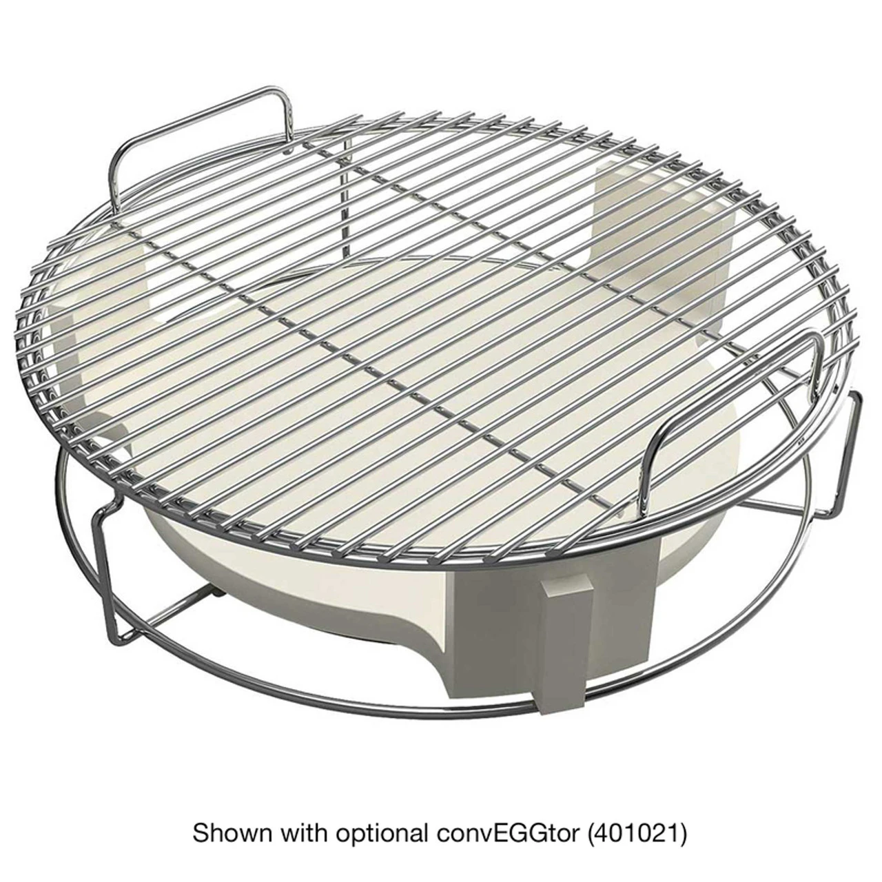 Using the ingenious convEGGtor Basket, it is easy to place your convEGGtor in your Big Green Egg or to remove it. You can cook on it directly or indirectly at several levels and if you combine it with the 2-Piece Multi-Level Rack, the possibilities are truly endless.