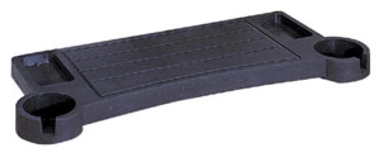 This Broilmaster side shelf will mount to any cart or post-mounted grill head and can fold down when not in use. Dimensions (in inches): 27 1/2 W x 10 1/2 D.