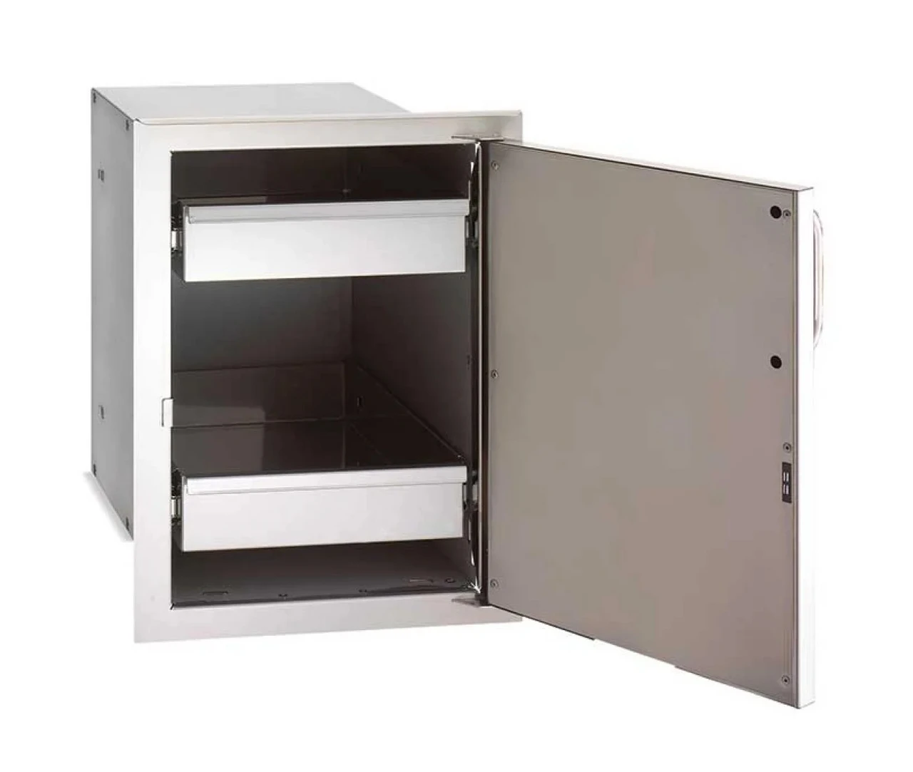- Fire Magic door hides two stainless steel drawers