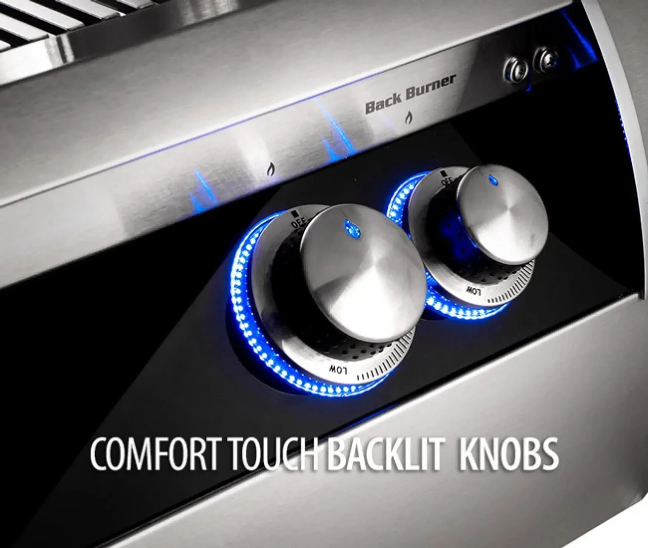 - Enhanced Lighting: Internal angled halogen lights and backlit controls for grilling anytime, day or night.