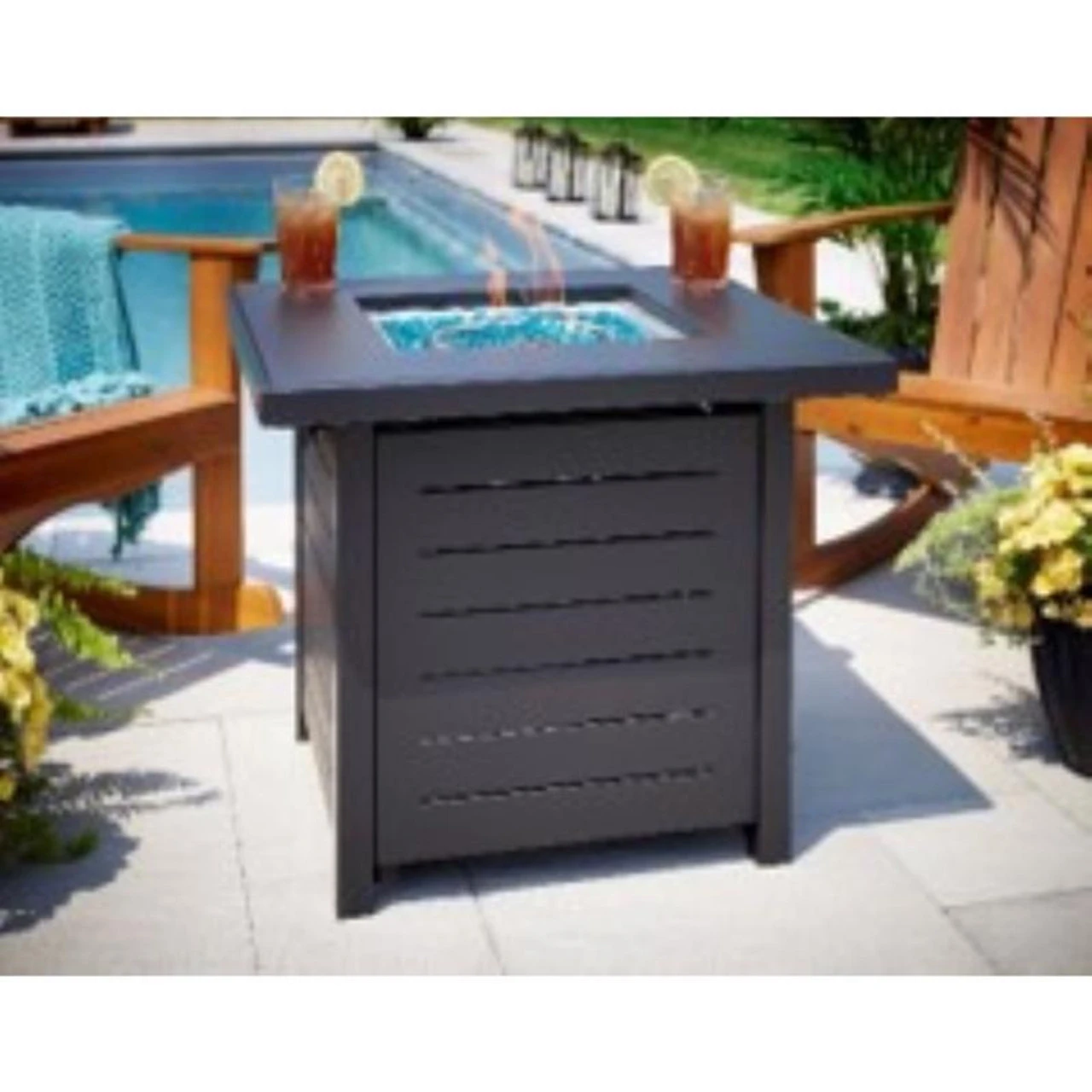 Propane fire pits 28 inch outdoor gas fire pit, 50,000 BTU steel fire table with lid and fire glass, add warmth and ambience to gatherings and parties on patio deck garden backyard.
