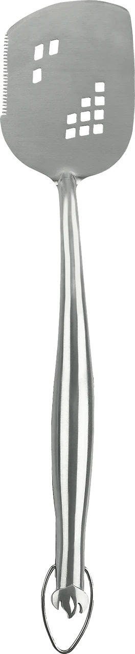 Napoleon PRO series stainless steel Spatula has an oversized head for firm control that will last. This oversized spatula is built to last, the super-durable stainless steel is perfect for the barbecue grill and easy to clean because it’s dishwasher safe. The serrated edge allows you to slice buns and trim food directly on the barbecue grill. The beveled front edge easily slides under food for fast and easy flipping while easily separating food that has stuck to the grill a little. The extra-long handle is ergonomic and features a rubberized grip for no-slip and cool handling whether you are working with charcoal, the 1800°-Fahrenheit SIZZLE ZONE sear station or directly over your main cooking grids on the gas barbecue grill. Keep one of the most used barbecue tools close at hand when cooking with the convenient tool-hanging loop. The flame decal on the end doubles as a bottle opener so the party never stops. Clever, multifunctional and easy to maintain, every kitchen benefits from the addition of a Napoleon barbecue accessory. Our accessories provide you with the essentials to create delicious grilled food and then some to enhance your cooking arsenal with a wide variety of creative additions to broaden your culinary horizons.