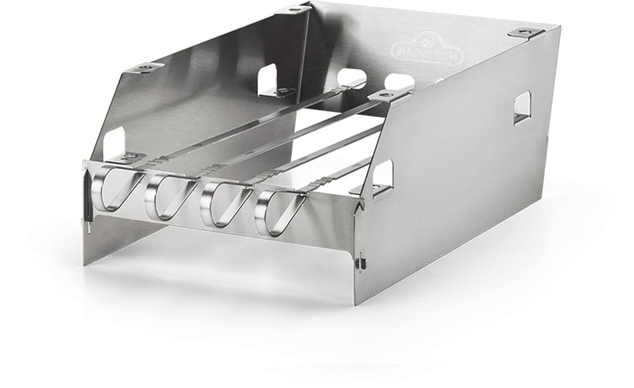 Designed for all Napoleon Rogue® SE-1 series, as well as the Prestige®, Prestige PRO™ und LEX grills with infrared SIZZLE ZONE™ side burner. Use the integral skewer racks for grilling kebabs. The racks fold down when not in use to prevent food from dropping into the interior of the burner, while it remains readily available for use with the main burner. Comes with 4 stainless steel skewers.