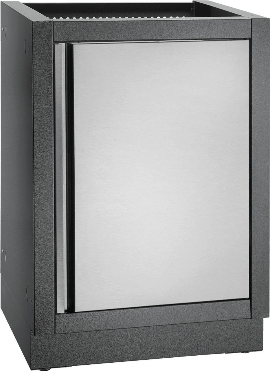 The perfect outdoor kitchen features loads of storage and a durable finish that will stand up to the elements. The OASIS™ Propane Tank Cabinet has a stainless steel door and features a propane tank pull out drawer that keeps the tank steady, saving your back when swapping tanks out. This Carbon colored, powder coated, galvanneal cabinet features increased durability from the two-coat pebbling finishing system. Installation is easy, coming fully assembled with knockouts for electrical and gas, as well as easy to level feet. Add this cabinet to the perfect outdoor kitchen OASIS™, along with your choice of grill head and under grill cabinet for perfect propane storage.