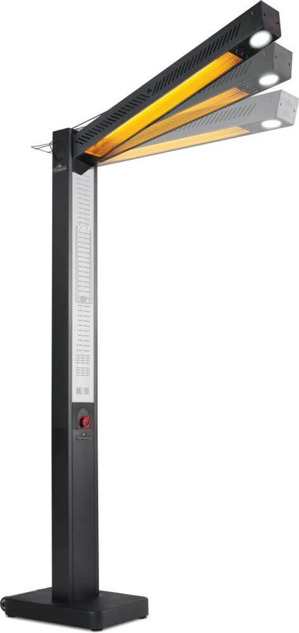 Make the most of your outdoor space with the Phantom Freestand Electric Heater. Stay warm long after sunset and enjoy your patio or garden year-round. Forget about propane tanks! The Phantom Heater provides a cleaner, hassle-free way to stay warm without the maintenance and odors associated with traditional heating methods. Powered by 1500W of infrared heat, it plugs into a standard 120V outlet—no expensive installation required. The foldable cantilever design and 8-foot cord allow flexible placement and easy storage. Place it beside your BBQ to keep you warm year-round while grilling! Lightweight and portable, it moves effortlessly while the intuitive light-up control knob easily adjusts heat and timer. This heater is made to withstand all weather conditions with little maintenance while looking sleek. Create unforgettable moments outdoors with the Phantom Freestand Electric Heater – a seamless blend of luxurious design and cutting-edge technology that lets you savor every season.