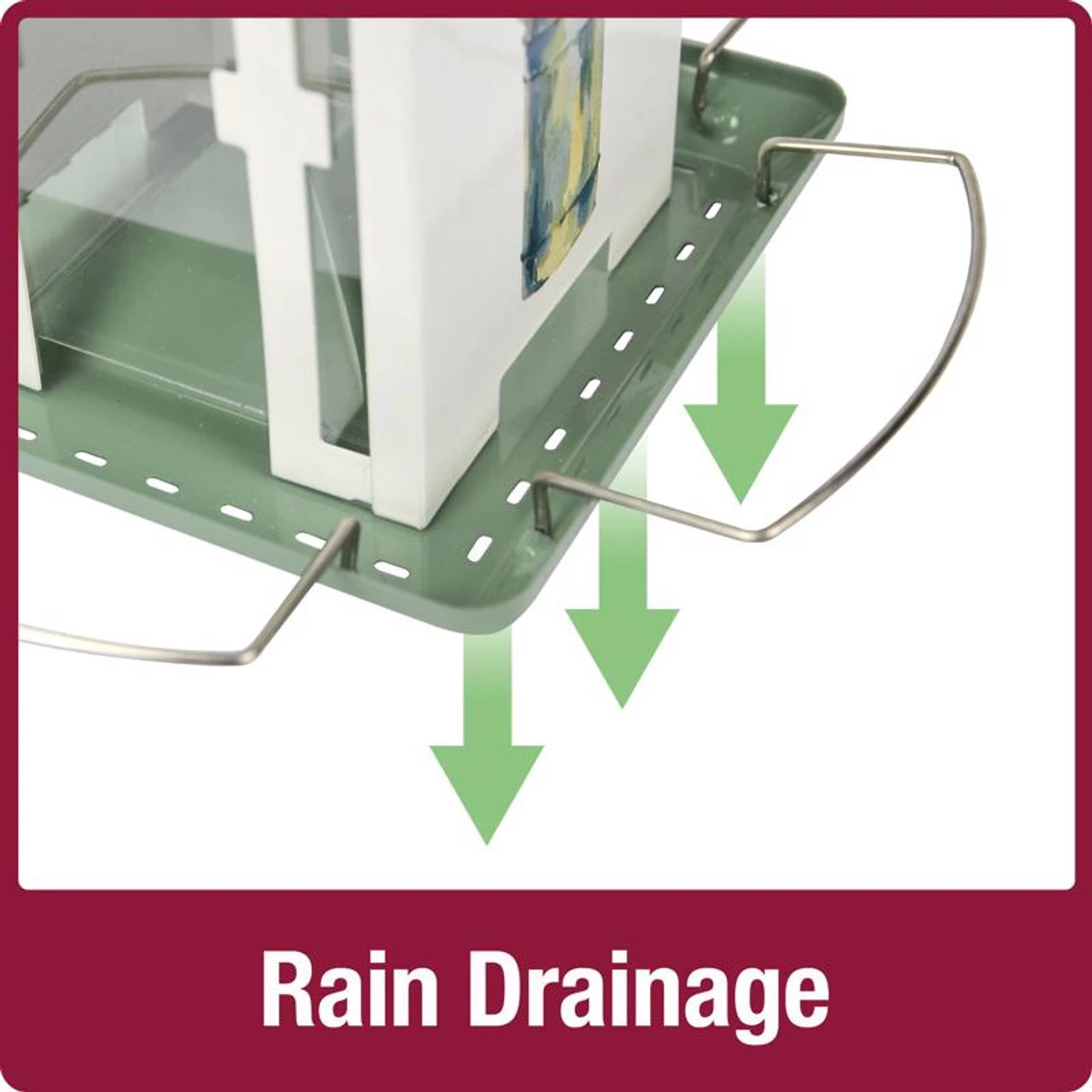 Add a touch of rustic simplicity to your yard with this charming gazebo bird feeder! Use a wide range of seed varieties to attract a variety of beautiful birds like Cardinals, woodpeckers, nuthatches, finches and more to your backyard. Keeping your seed fresh longer. While four fold-out perches provide ample space for small and large birds.