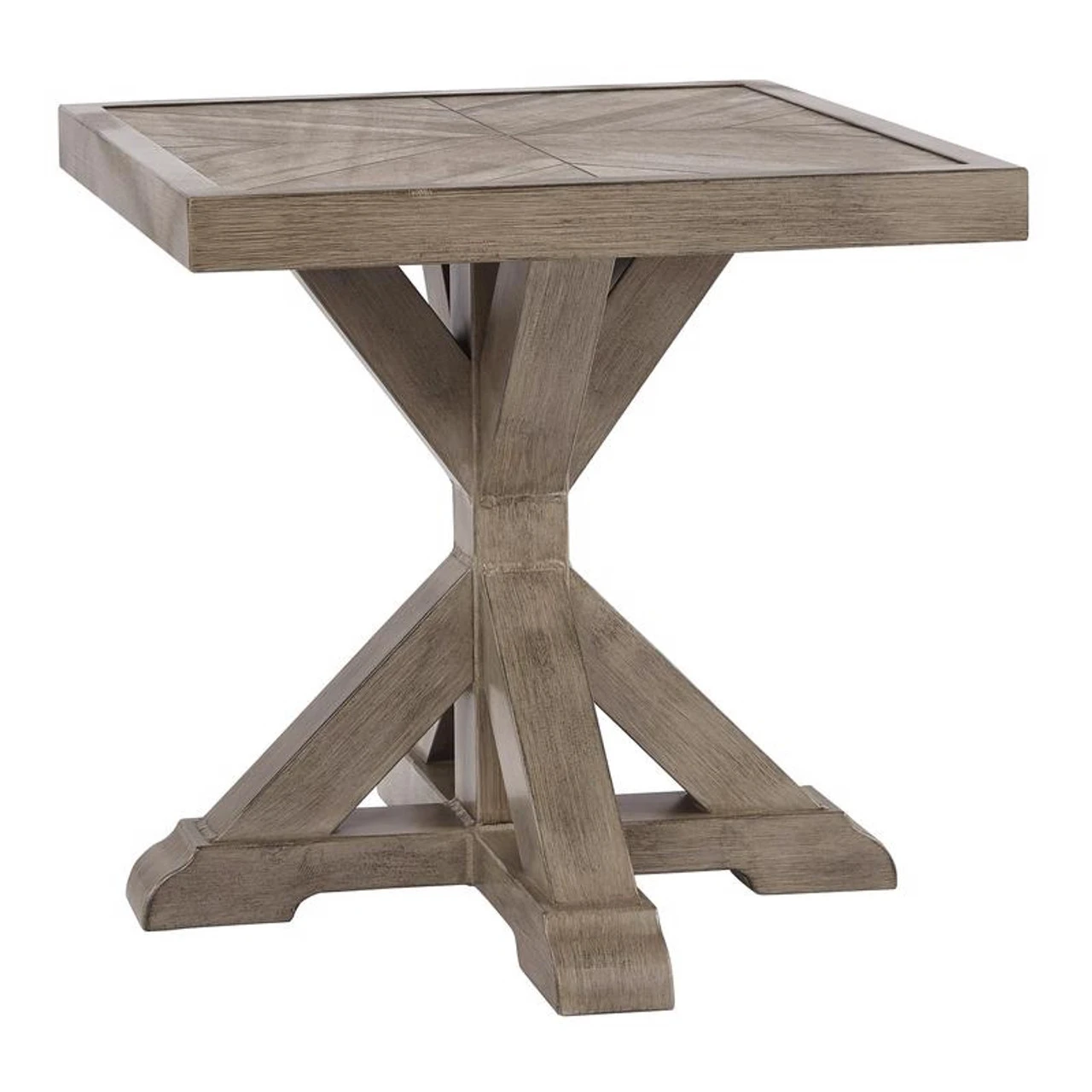 Sporting an easy-on-the-eyes look inspired by driftwood, this square end table elevates the art of indoor-outdoor living. Beautiful and durable enough for indoor and outdoor use, this high-style/low-maintenance table charms with x-leg farmhouse styling.