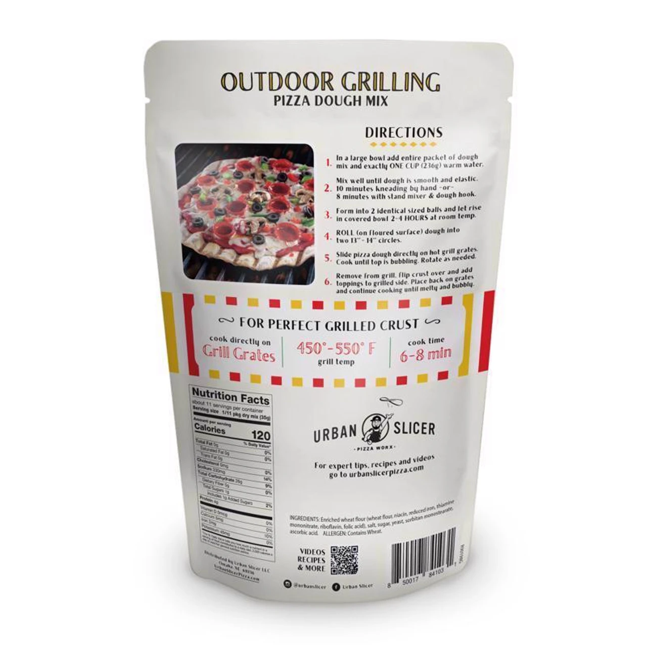 Fire up your grill because this dough is designed to cook directly on the grates. Each package makes Two 14 in. Outdoor Grilling crusts. Urban Slicer’s Outdoor Grilling Dough is our lowest gluten blend, which lends well to those awesome Thin ‘n Crispy pizzas.