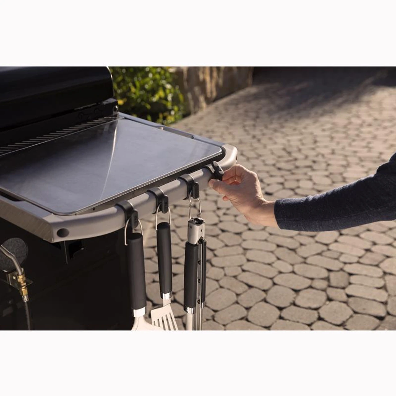 Keep paper towels, tools, and trash bags handy and ready to use with the Weber Works Organizer Kit. Simply snap the accessories onto the Weber Works rail to ensure that your essentials are within reach by the grill when you need them. Compatible with the Weber Works Prep, Cook, and Store System, available now on Slate 30″ and 36″ Griddles and Expandable Stand.