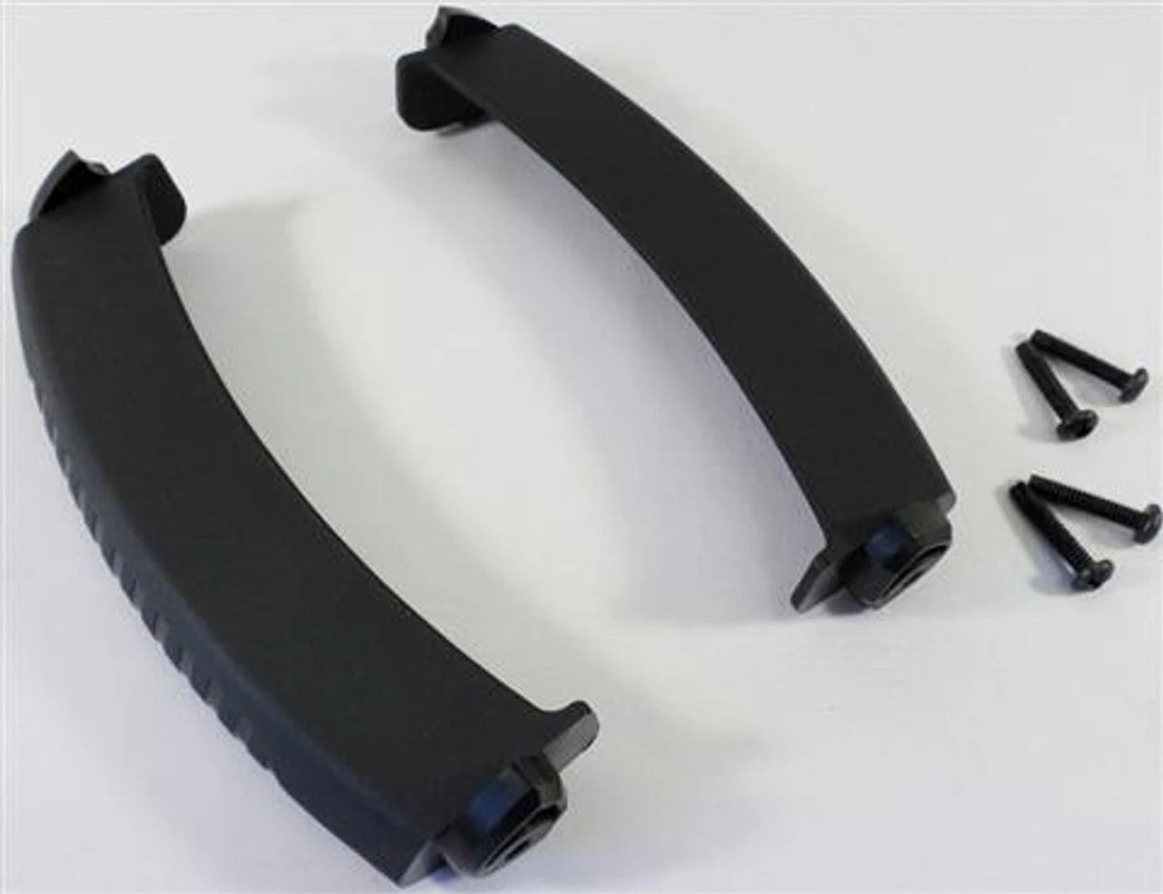 Set of two “Side Handles” for Weber Q1000/1200, “model years 2014 and newer”. Overall length is 9″ (including the leg insert tabs). Mounting hardware and installations instructions included.