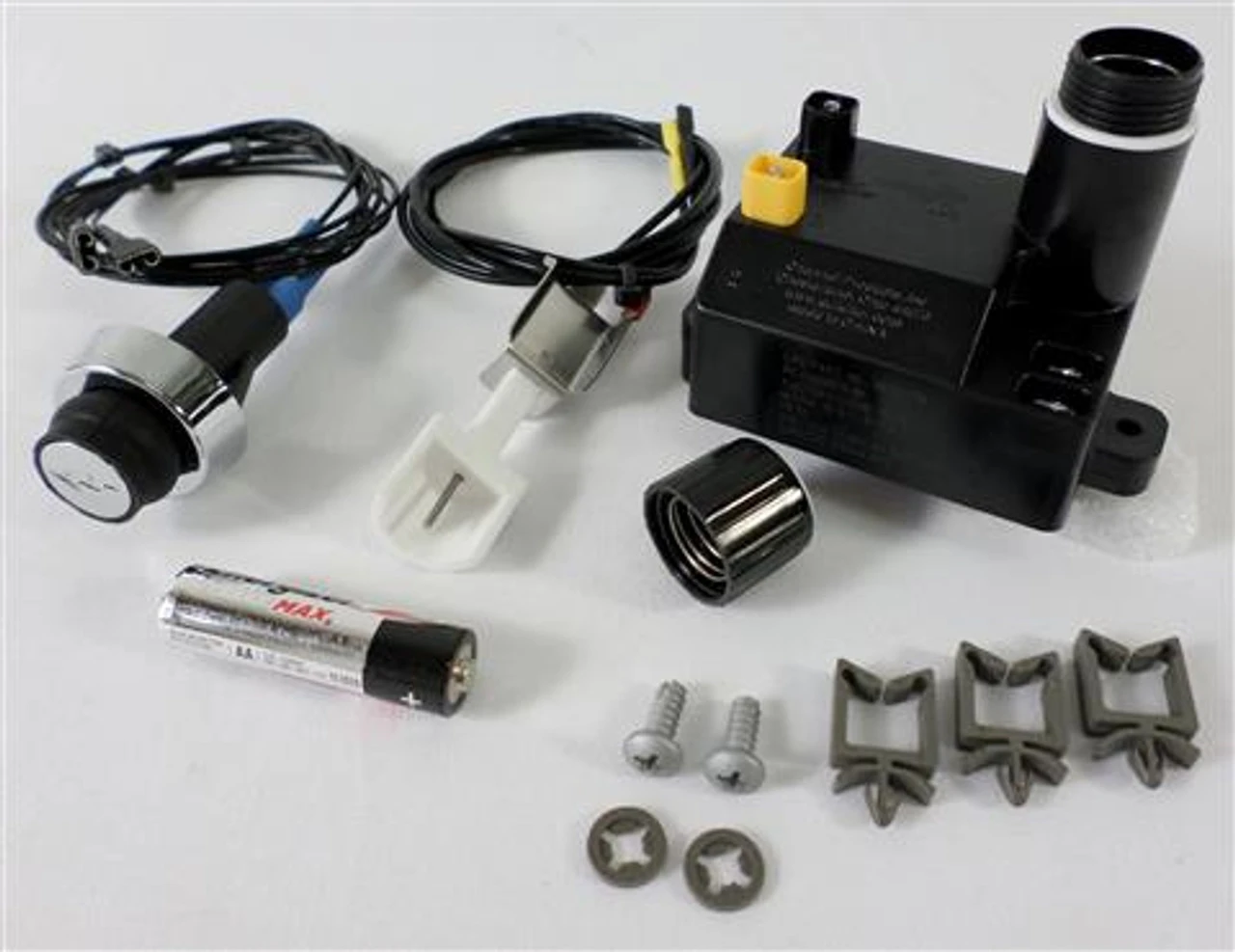 Complete “AA” igniter kit for Weber “Spirit II” 210 Series (2017 and newer). Kit includes, 2-ouput ignition module with 2-input terminals for ignition switch, push value switch with 33″ long wires, electrode/collector box with 28″ long wires, “AA” battery, mounting hardware and installation instructions.