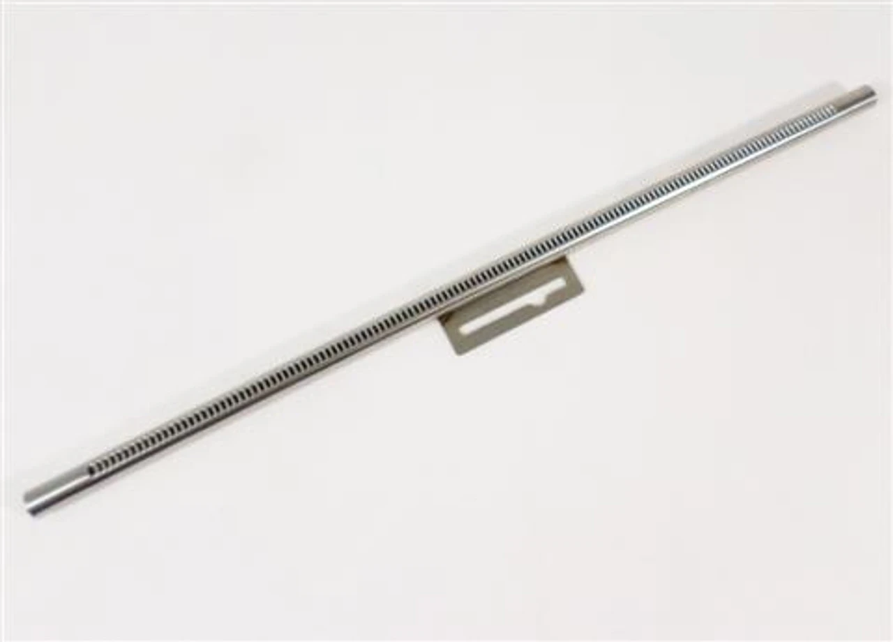 A crossover burner tube measuring 12-3/4″ in length, specifically crafted for Weber Genesis 300 grills from model years 2007 to 2010. This compact burner tube, equipped with a welded tab, is tailored to support the middle burner while facilitating the transfer of flame from the front ignited burner to both the middle and rear burner tubes.