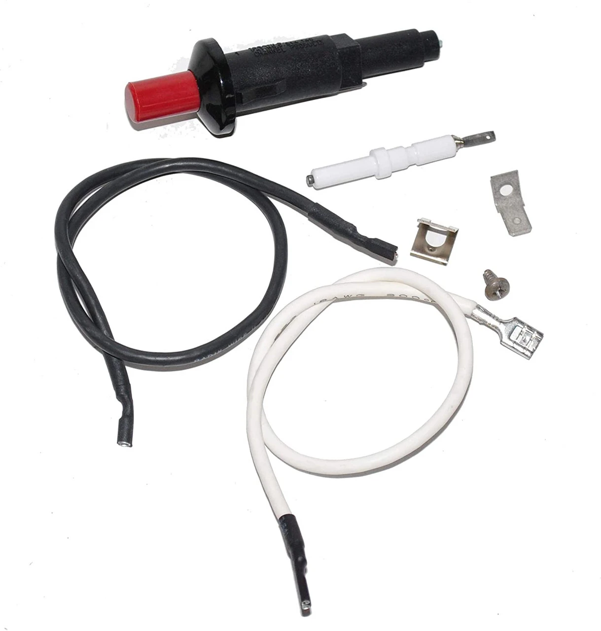 Replacement side burner igniter assembly for Weber Summit 400/600 series and Genesis 320/330 series. Kit includes side burner wire, ground wires, side burner snap-fit igniter, and instruction sheet.