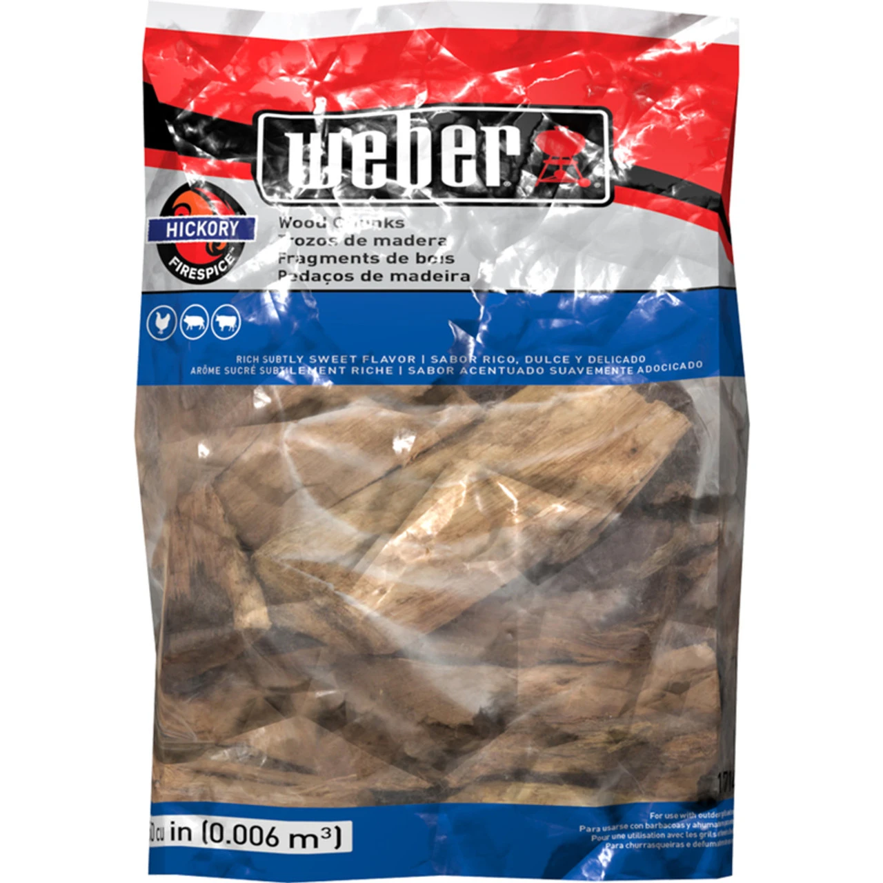 350 Cu. In. For gas or charcoal grills Add soaked and drained chunks directly to your hot coals or smoker box to impart great flavor to your food Hickory Bagged